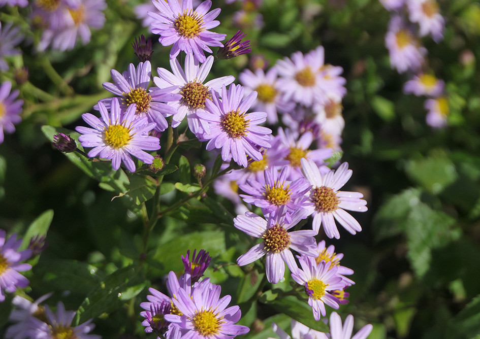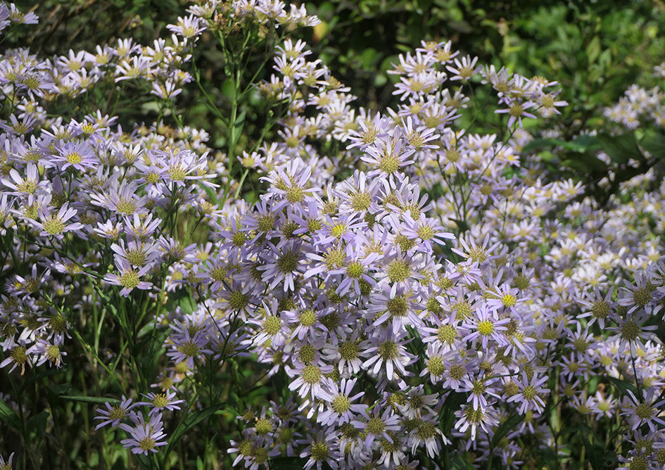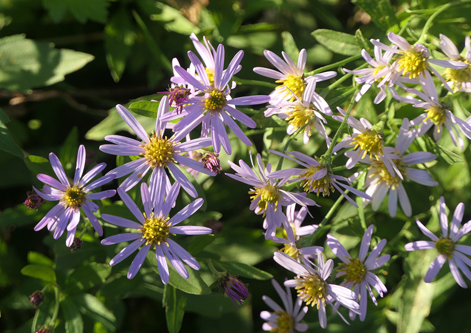 今現在、ガーデンのあちこちで咲いている野菊、実は野菊という名称の植物はありません。一般的には、ノコンギクやヨメナを総称して野菊と呼ぶのではないかと思います。ガーデンでは、紫、薄紫、薄桃色のノコンギク、そして白、薄紫のヨメナがあちこちで混在しています。識別がよくわからないものもあります。晩秋を彩る野菊たち、派手さはありませんが、可憐に咲いています。