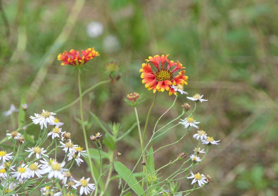 その他、シオン、オトコエシ、シュウメイギク、ホトトギス、ガイラルディア、フクシア、ブッドレア、ムラサキシキブ、ラベンダーセージ、ワタバナ、アスター、アメジストセージ、ダリア ガッツァリア、コレオプシス、ニチニチソウ、などが開花、結実、もしくは開花中です。