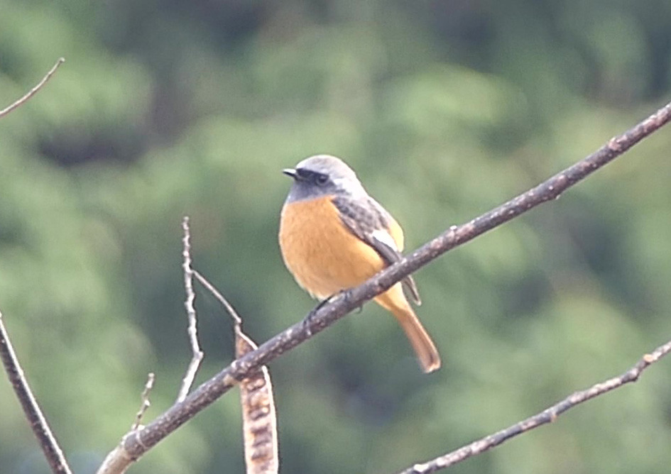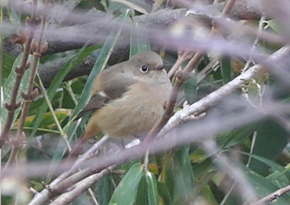 ジョウビタキのメスが羽毛を膨らませてまんまるになっていました。