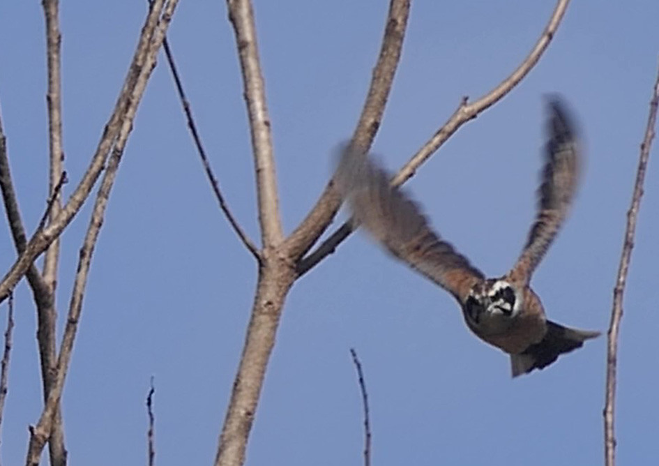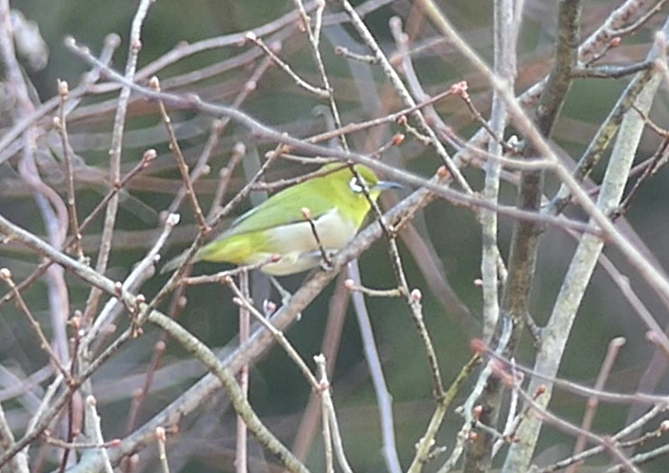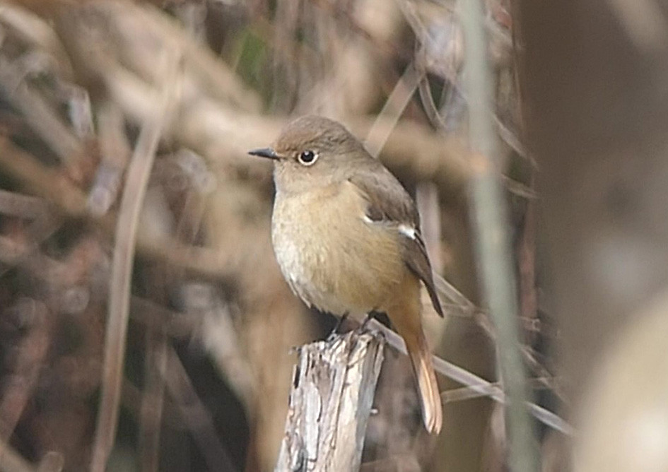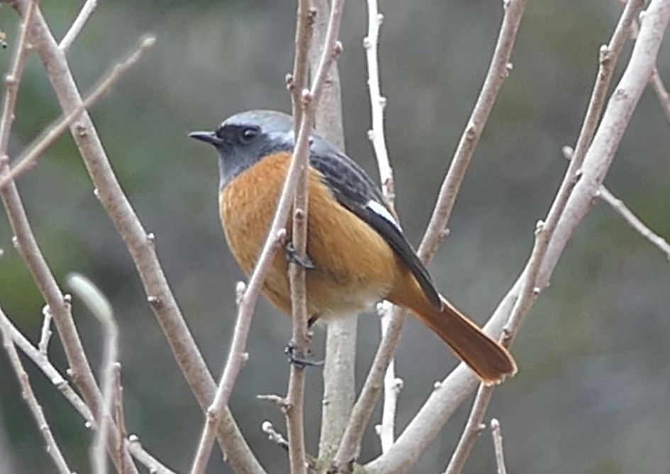 ロウバイのつぼみを食べるジョウビタキを発見しました。このままではロウバイが咲く前に全部食べられてしまうのではないかとひやひやしていましたが、あまりおいしくなかったと見えて、それ以上は食べませんでした。