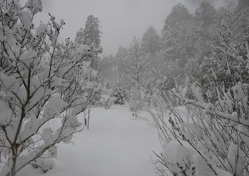 2月3日節分の日は、朝、雪が降っていました。ガーデンの積雪は10cm、樹木には雪がまるで花のように降り積もっていました。雪がやみ気温が2℃を超えてくると、このような状況はすぐに変化してしまいます。木の枝の雪は溶けてなくなり、地面に積もった雪だけになってしまうのです。朝だけの特別なガーデンの姿を、インスタグラムでmusicの「雪の華」をバックにまとめていますので、ぜひご覧ください。
