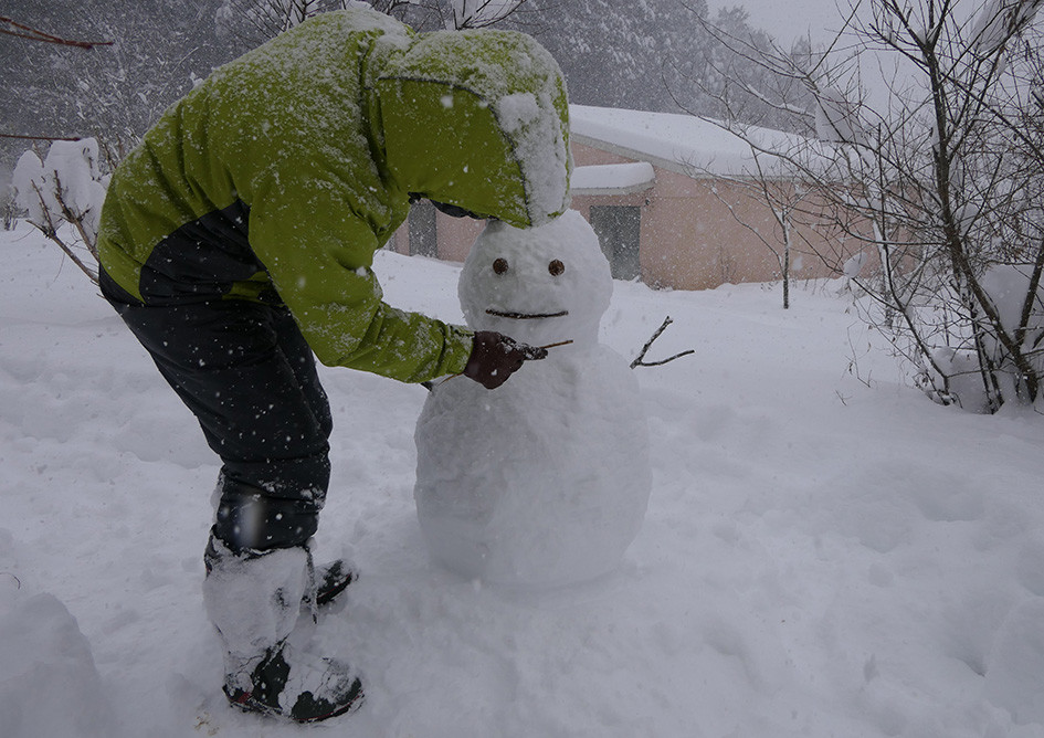 8日の大雪の時につくった雪だるまは2日たった10日には壊れていましたので、もう一度つくりなおしました。この日の残雪は30cmありましたので、まだ、雪だるまの補修は十分できます。雪だるま君の寿命は1日だけです。それでも、今年もガーデンに登場してくれましたので、とてもありがたいです。感謝の意味で、インスタグラムの動画に記録しました。