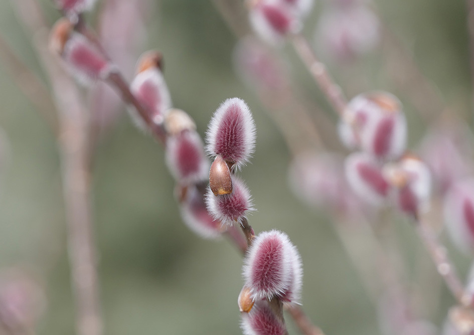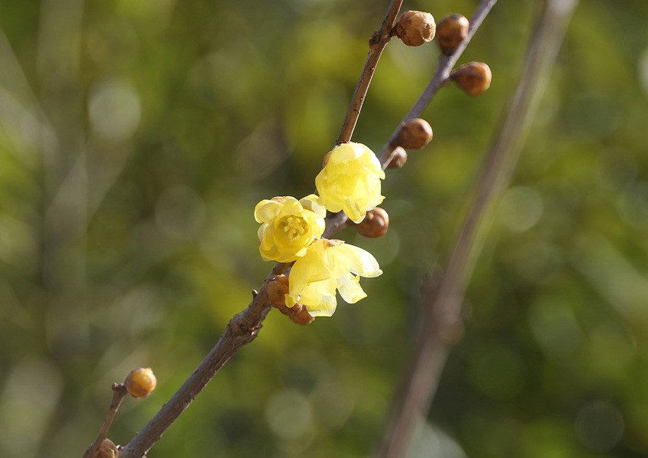 2月17日、ホオジロがこのところ澄んだ声でさえずり始めました。昔の人は「いっぴつけいじょうつかまつりそうろう」と聞き取ったとか。春は近いよ、と鳴いているようです。ネコヤナギがモフモフの花穂を膨らませ始めました。ロウバイはよい香りを放って、ロウ細工のような花を開花させています。