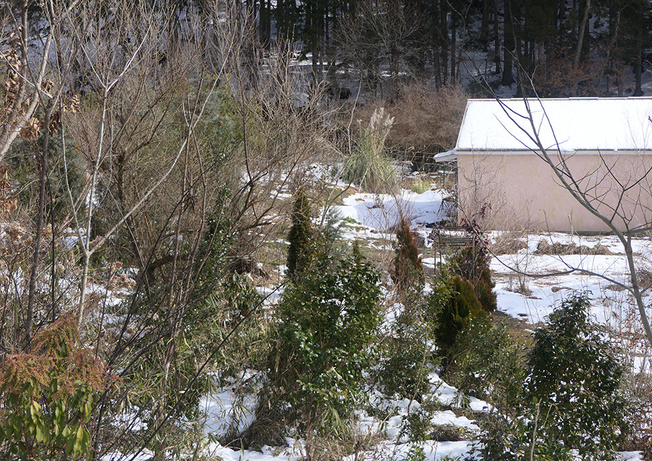 2月14,15日、この土日は気温が上がり、特に15日は、ガーデンの最高気温が12.4℃に達して、一気に雪解けが進みました。もう雪は降りそうもない状況です。